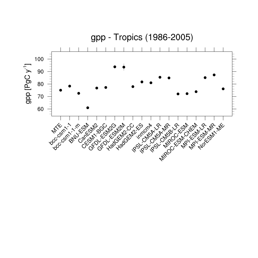 Fig. 342 Errorbar plot for tropical gross primary production (GPP) over the period 1986-2005.#