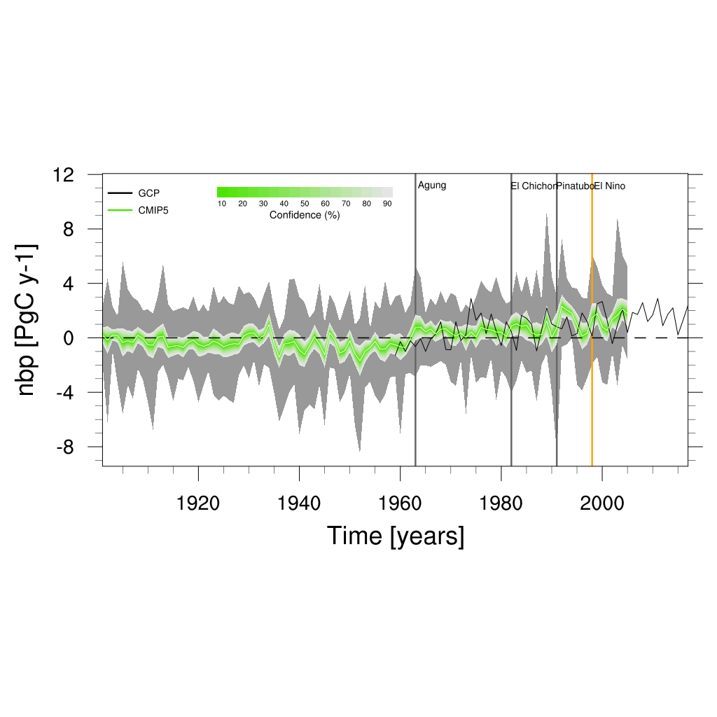 Fig. 340 Time series of global net biome productivity (NBP) over the period 1901-2005. Similar to Anav et al. (2013), Figure 5.#