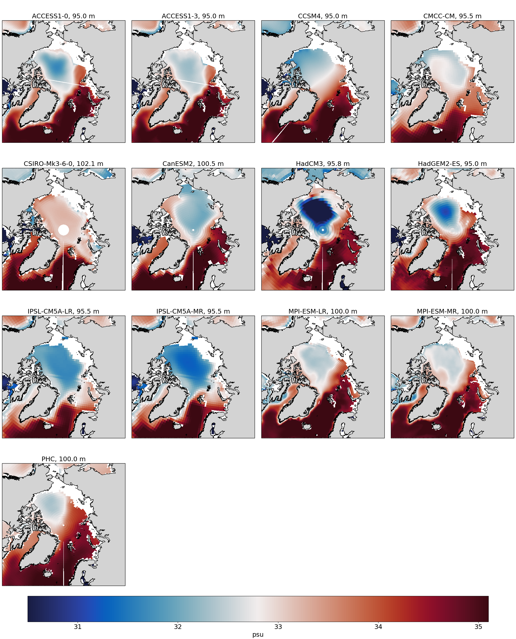 The main focus of this diagnostics is evaluation of ocean components of climate models in the Arctic Ocean, however most of the diagnostics are implemented in a way that can be easily expanded to other parts of the World Ocean. Most of the diagnostics aim at model comparison to climatological data (PHC3), so we target historical CMIP simulations. However scenario runs also can be analysed to have an impression of how Arcti Ocean hydrography will chnage in the future.