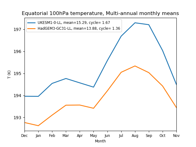 The tropical tropopause cold point (100hPa, 10S-10N) temperature is an important factor in determining the stratospheric water vapour concentrations at entry point (70hPa, 10S-10N), and this in turn is important for the accurate simulation of stratospheric chemistry and radiative balance.