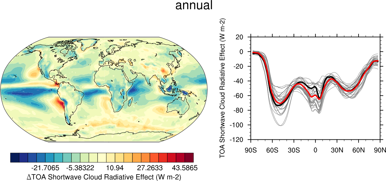 recipe_clouds_ipcc.yml computes multi-model mean bias and zonal means of the clouds radiative effect (shortwave, longwave and net). Similar to IPCC AR5 (ch. 9) fig. 9.5 (Flato et al., 2013).