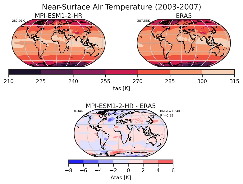 These recipes and diagnostics provide a basic climate model evaluation with observational data. This is especially useful to get an overview of the performance of a simulation. The diagnostics used here allow plotting arbitrary preprocessor output, i.e., arbitrary variables from arbitrary datasets.