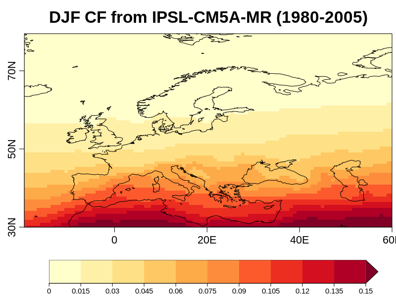 Fig. 400 PV capacity factor calculated from IPSL-CM5-MR during the DJF season for 1980–2005.#