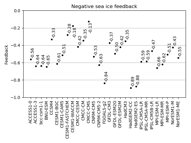 Fig. 406 Seaice negative feedback values (CMIP5 historical experiment 1979-2004).#